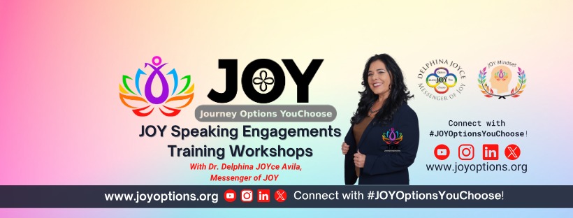 Thank you for your interest in bringing the JOY Mindset, Leadership, Resilience, and Wholistic Wellness to your event! Dr. Delphina JOYce Avila, Messenger of JOY, delivers engaging and impactful speaking experiences that inspire individuals and organizations to embrace JOY, purpose, and success.